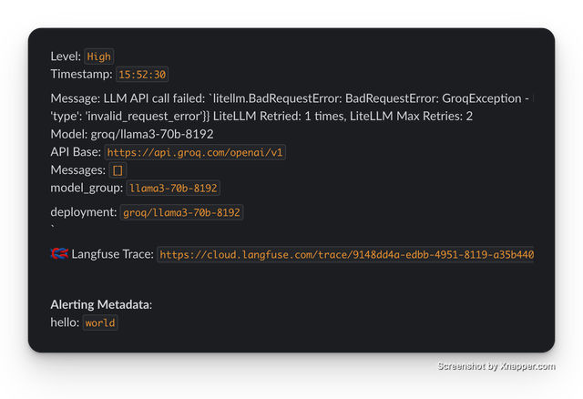outage_alerts | Alerts when a specific LLM deployment is facing an outage | ✅ |