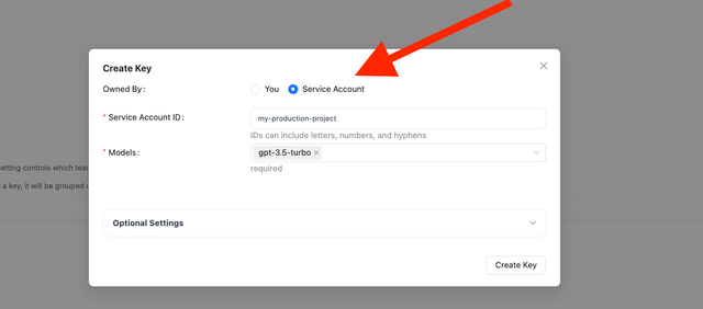 2. Create Service Account Key on LiteLLM Proxy Admin UI​